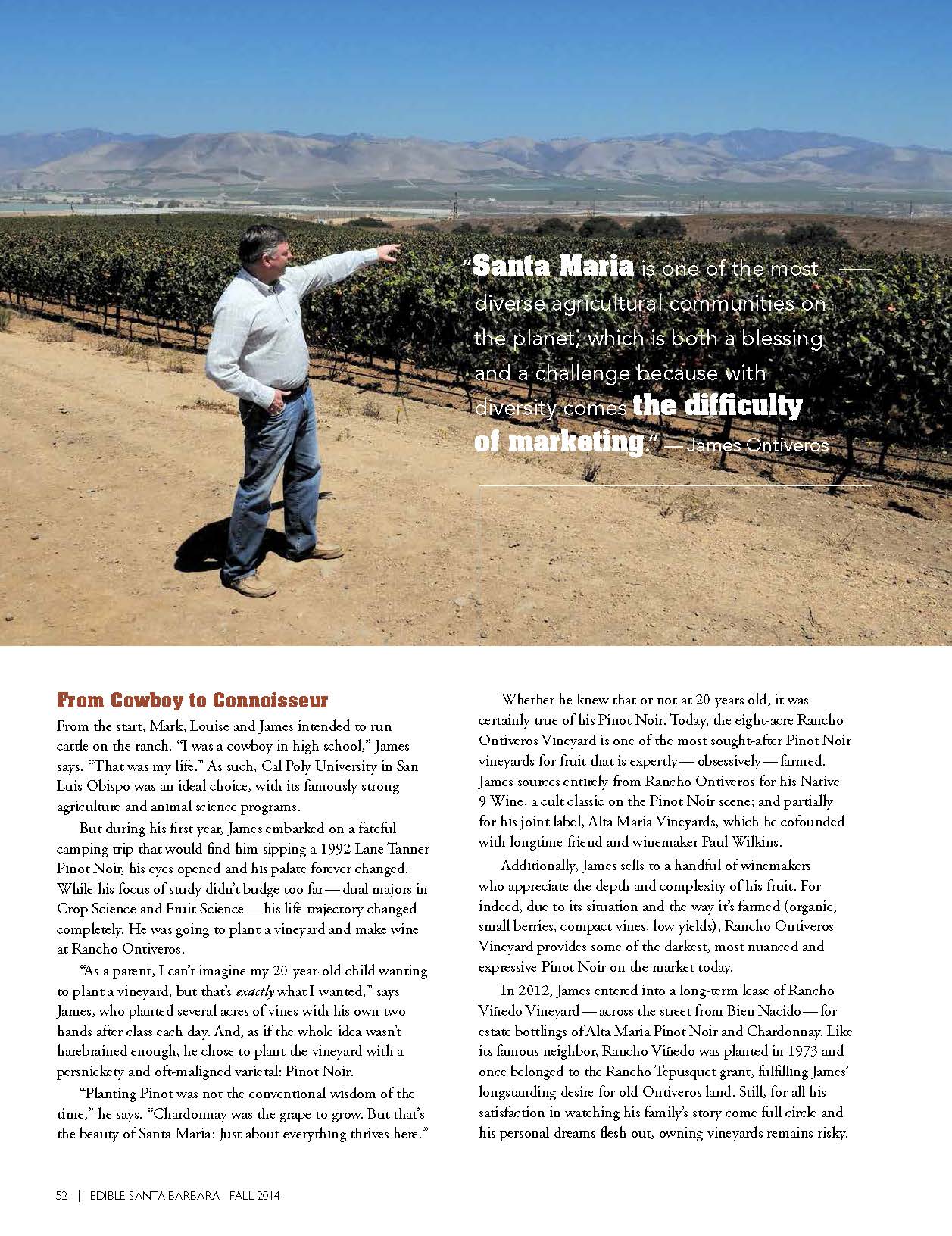 Writing about the history of Santa Maria agriculture through the eyes (and lineage) of winemaker, businessman, and rancher, James Ontiveros, was easily one of the most interesting and fulfilling assignments I’ve ever taken. Story posted here with permission from Edible Santa Barbara Magazine.