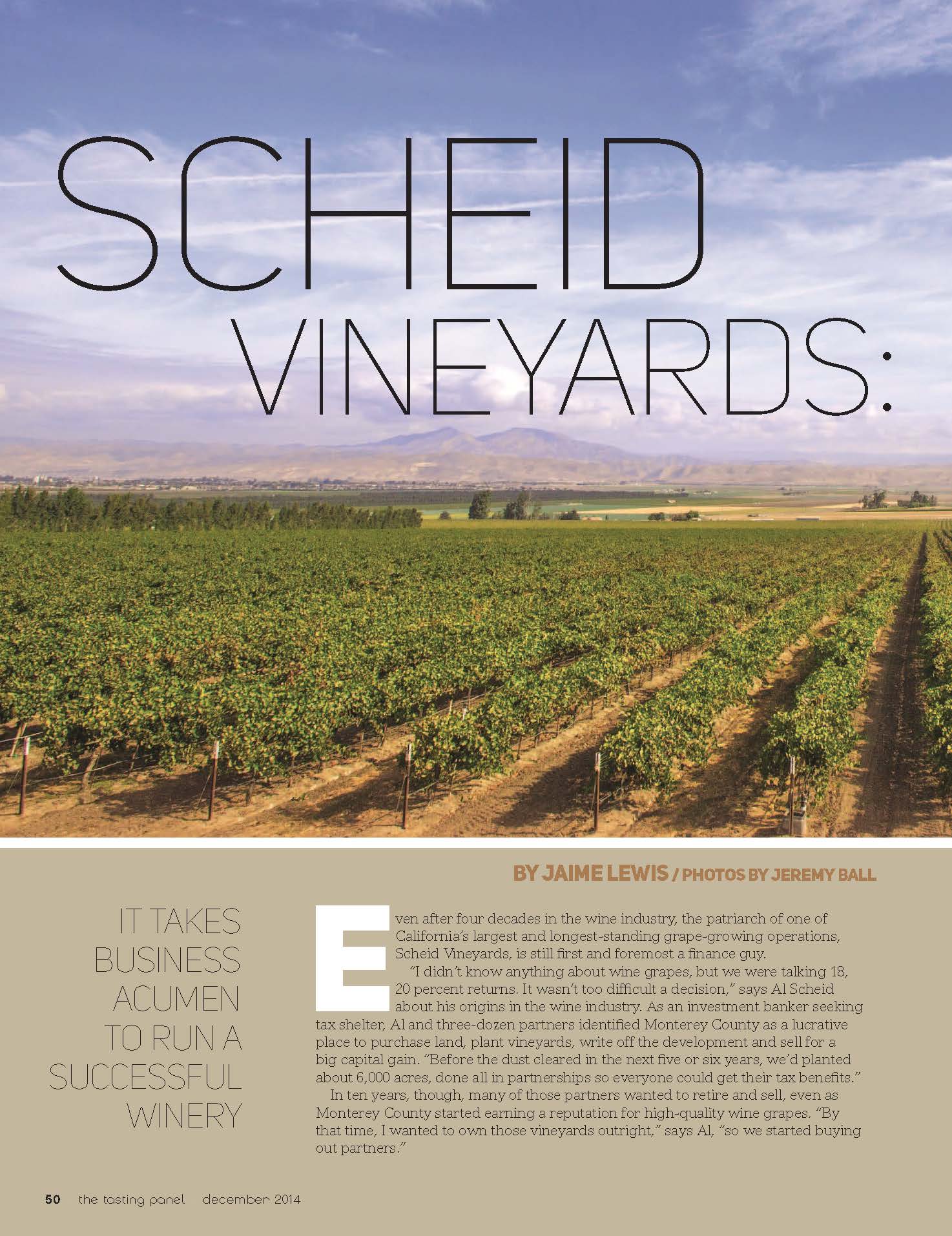 “Scheid Vineyards: Farming, Winemaking and Advocacy for 40 Years,” The Tasting Panel Magazine, December 2014 Posted on December 10, 2014 by Jaime Share this: Click to share on Facebook (Opens in new window) Facebook Click to share on X (Opens in new window) X Like Loading... Related
